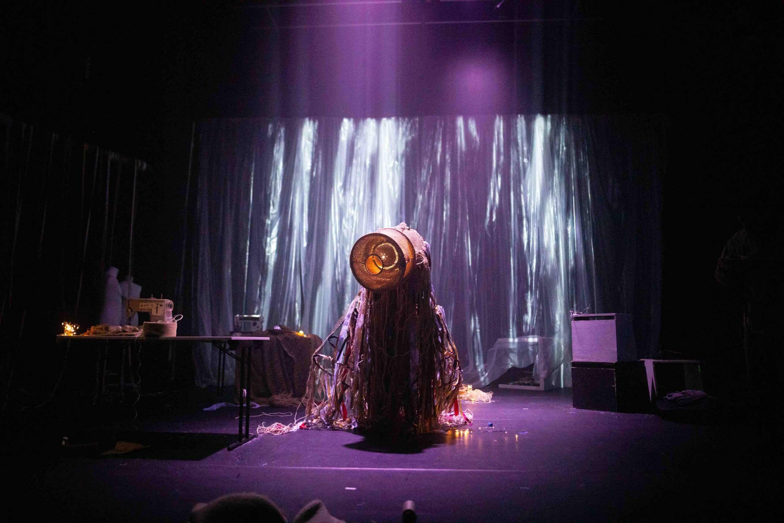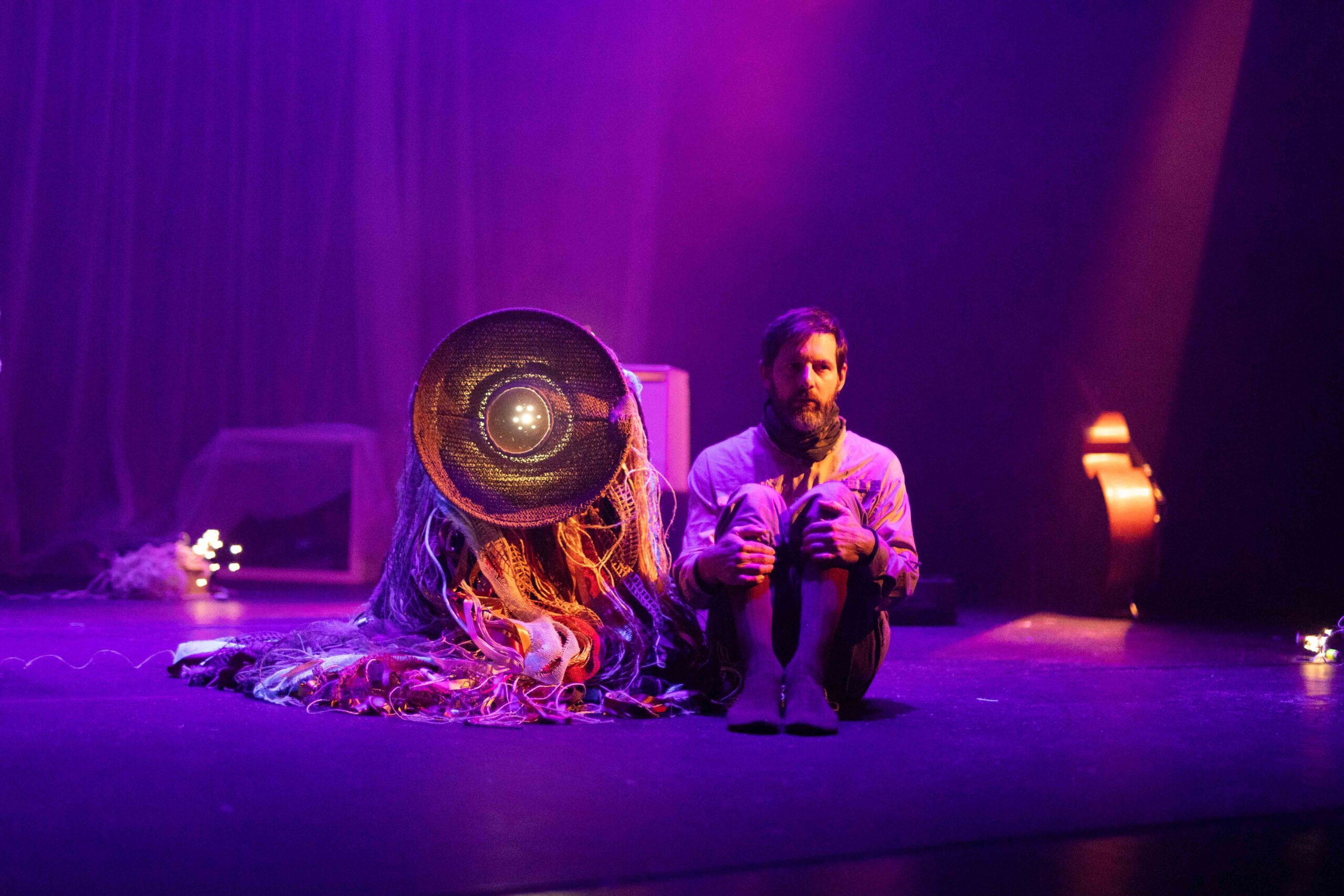 Die Energie für den Rückblick rupft der Überlebende aus dem Boden. Woher sie wirklich kommt, erklärt sich nach und nach. Zu viel sei hier nicht verraten. Nur dass ein geisterhaftes Wesen damit zu tun hat, ein tanzender Müllsammler, ein postapokalyptischer Percht (beeindruckend performed von Chiara Schaller). Das Monster – einäugig, zottelig – ist, man kennt die Konstellation aus gängiger und großartiger Science-Fiction, vielleicht gar keines. Und der Mensch mutmaßlich schon.