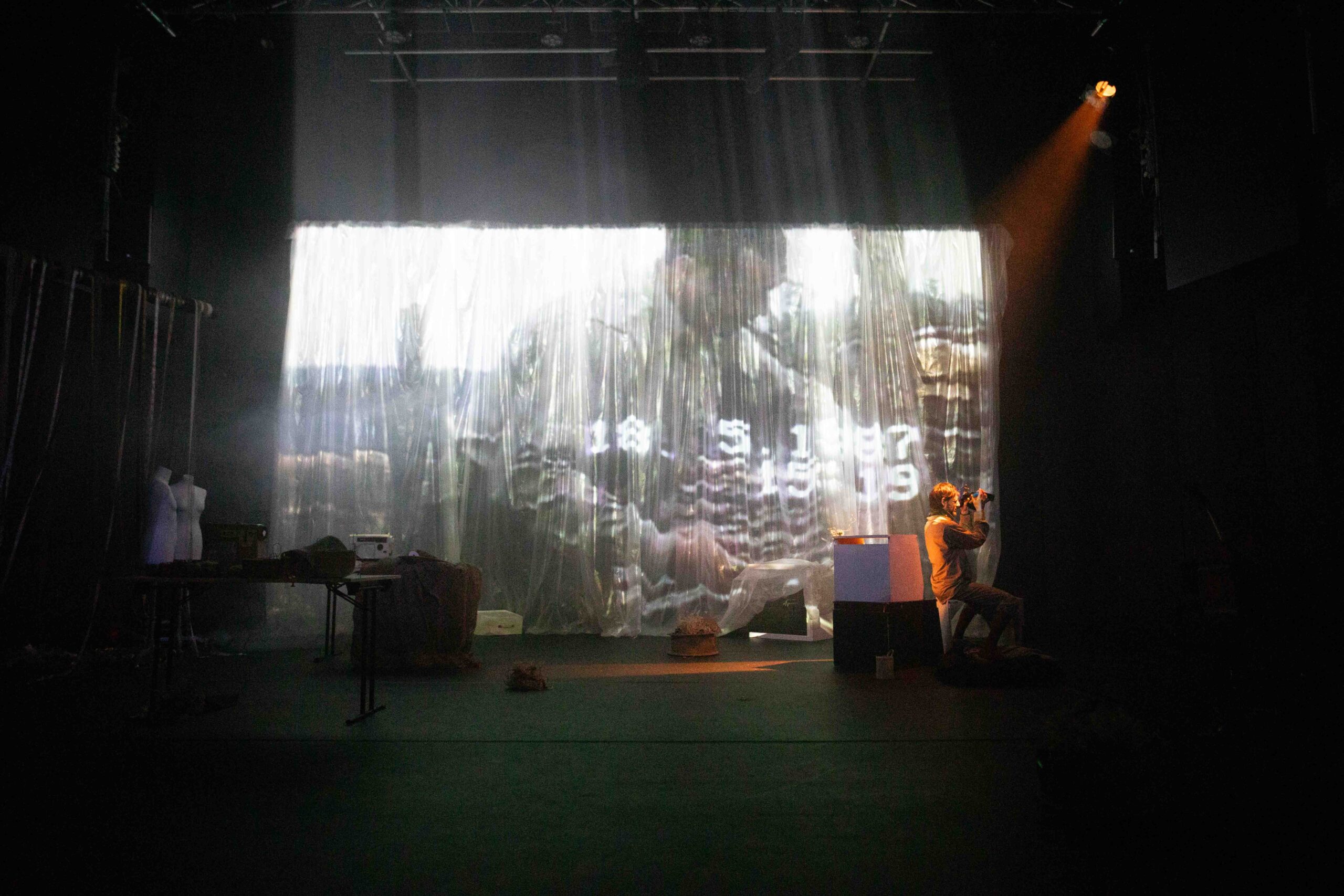 „The Collapse“, die neue Produktion von OffTanz Tirol, spielt nach dem Kollaps. Ein Musiker (Walter Singer) zieht, wie einst Mad Max, durch düstere Düsternis. Es staubt, raschelt, knarzt und hallt bedrohlich (Musik und Klangkulisse: Andreas Tentschert). In einer Industriebrache, einem früheren Sweetshop vielleicht, macht er halt. Weil die Gegenwart grausam und die Zukunft finster ist, schaut er zurück, flüchtet sich in den Bändersalat alter Videos und in die Zeit vor der Verwüstung. So lassen sich auch für die Zuschauer die Kipppunkte auf dem Weg in die Katastrophe nachvollziehen.